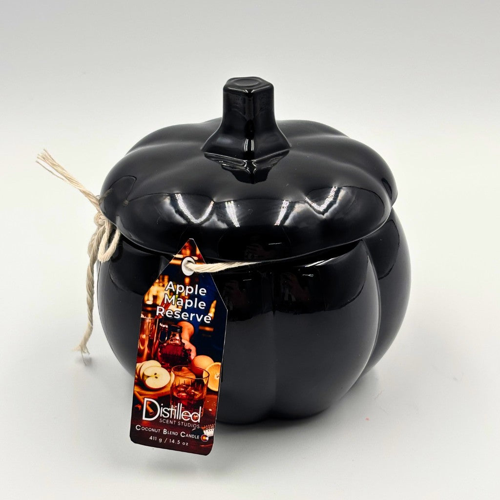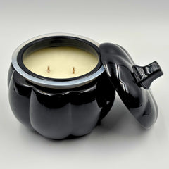 The matching glass lid is engineered for a satisfying, snug fit, protecting the wax and preserving the fragrance's integrity. Best of all, its utility doesn't end when the flame is gone; this handsome vessel is designed for resuability (classic candy jar? holiday pen holder? seasonal catch-all?). Available in Glossed Orange, Black, and Clear to perfectly match your autumn aesthetic.